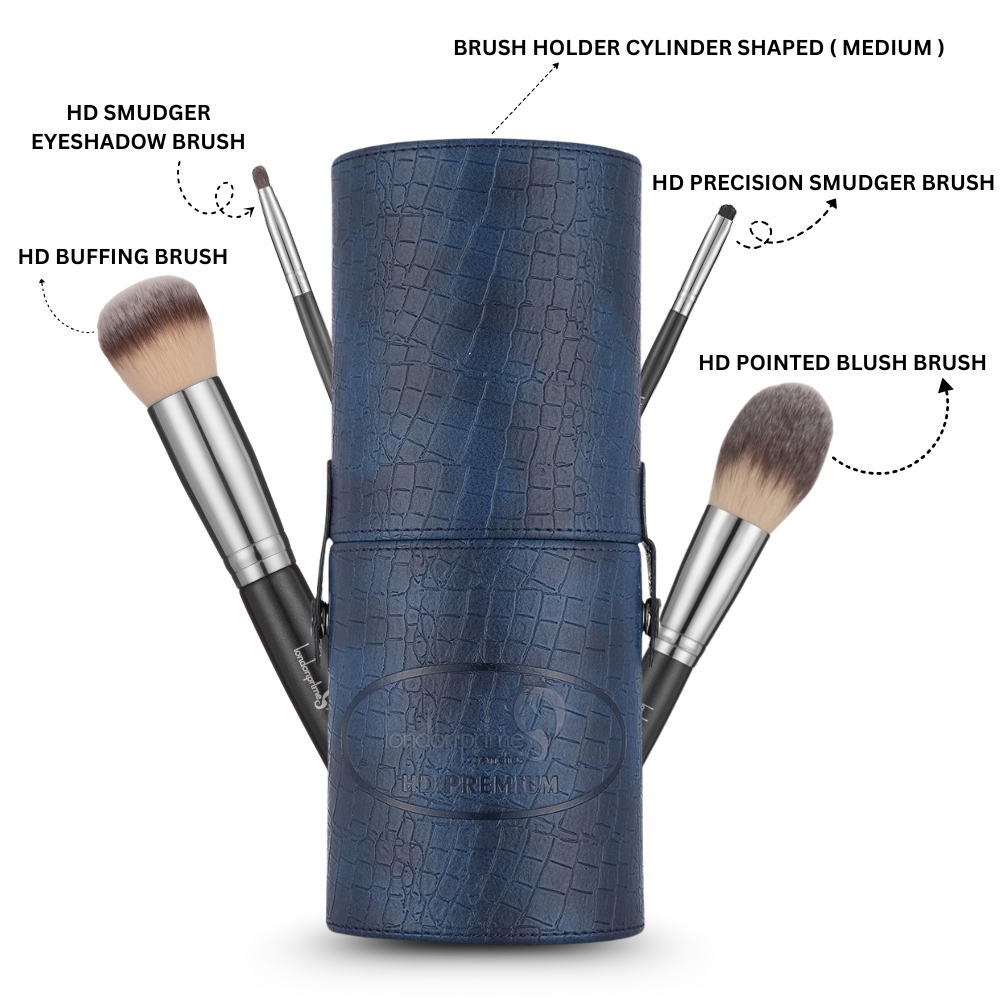 London Prime Pro-Blend Makeup Kit – Brush Holder + 4 Premium HD Brushes (Buffing, Pointed Blush, Precision Smudger & Smudger Eyeshadow Brush)