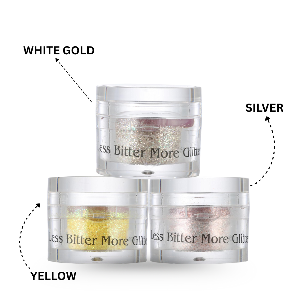 London Prime Sparkle Trio Glitter Combo – White Gold + Silver + Yellow | Ultra-Fine, High-Pigment Makeup Glitter for Face, Eyes & Nails