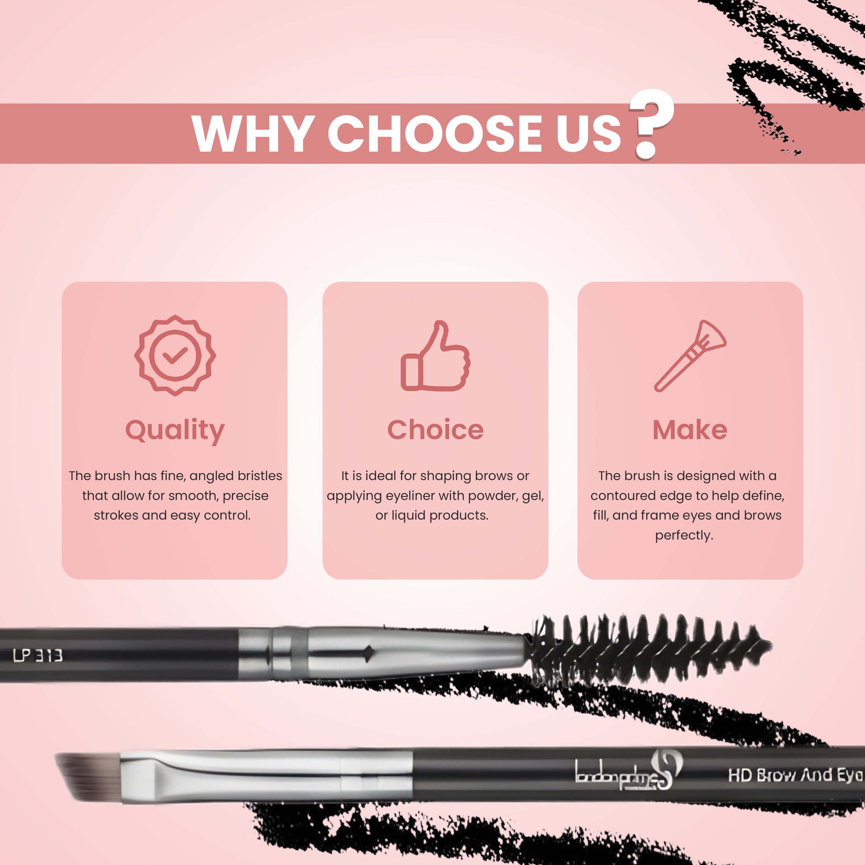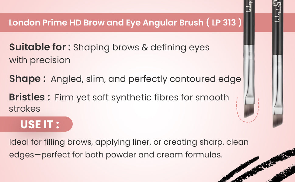 A real-multifunctional London Prime Cosmetic’s HD Brow and Angular Liner Brush are perfect for grooming brows and lining the eyes. With its contoured shape this Brush fills in eyebrows with powder or applies liquid in hard to reach places.