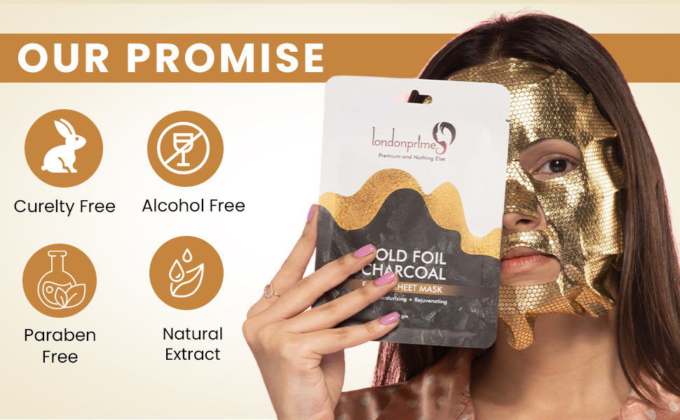 How long should I keep London Prime Gold Foil Facial Sheet Mask Gold Brightening, Moisturizing & Antiwrinkle charcoal facial sheet mask on?
