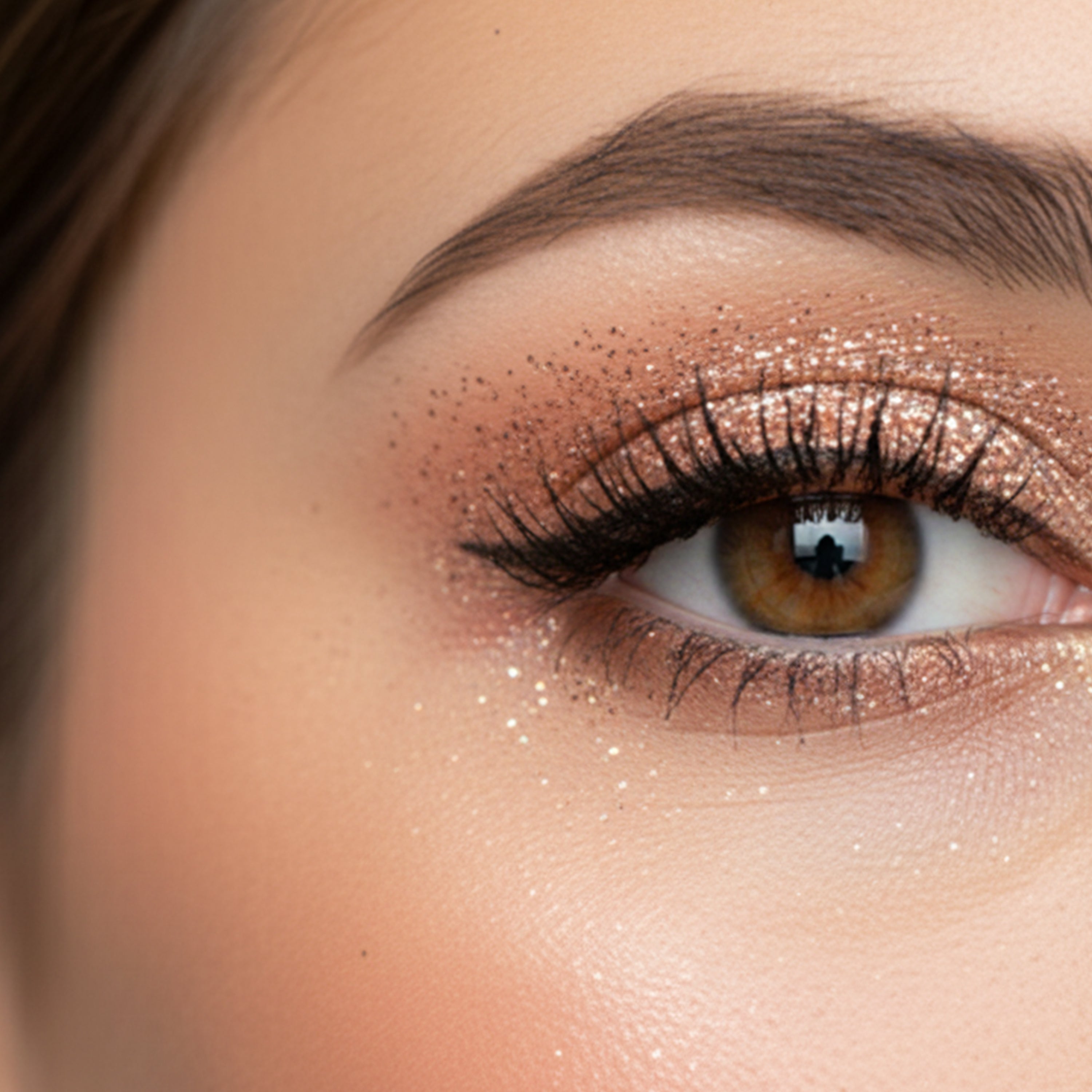 Use finely milled glitter with an approved eye‑safe adhesive; avoid getting it in the eyes.