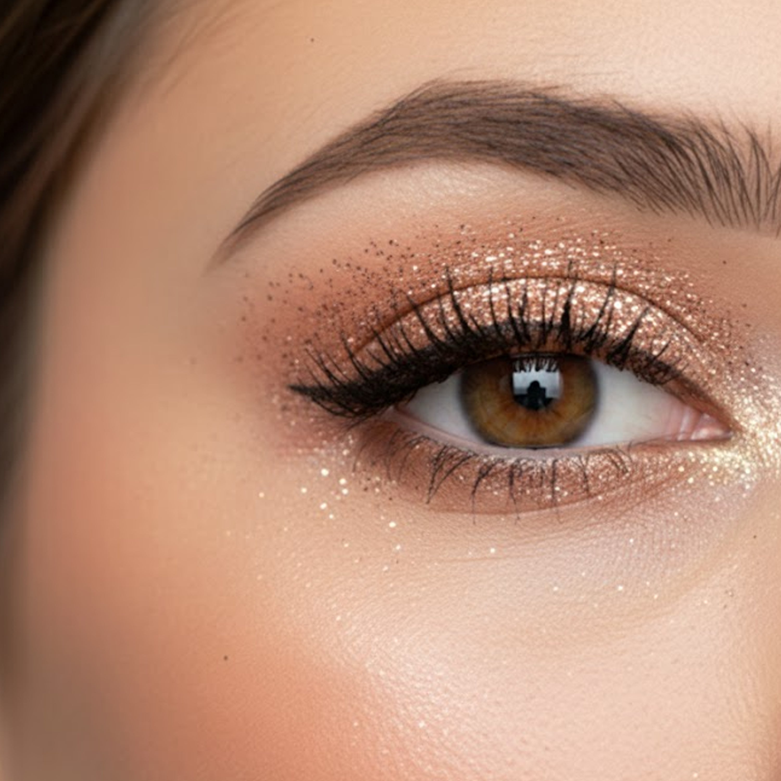 Use finely milled glitter with an approved eye‑safe adhesive; avoid getting it in the eyes.