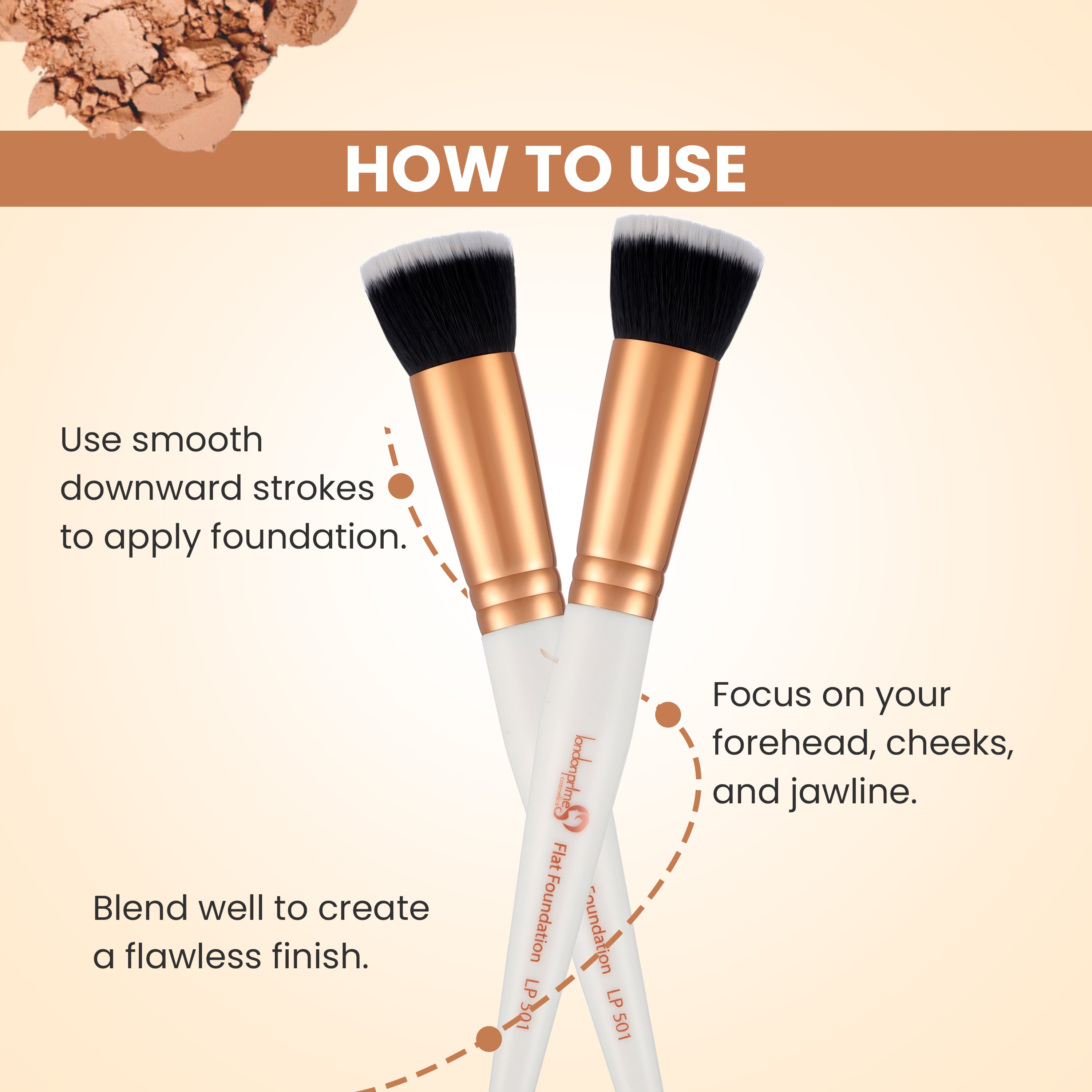 I'm obsessed with this flat foundation brush! The quality is top-notch, with soft bristles that blend foundation seamlessly into my skin. The white handle with gold accents is gorgeous, and the labeling is clear and easy to read. The brush is a dream to use, providing flawless coverage and a smooth finish. I've tried many foundation brushes before, but this one is hands-down the best. Highly recommend! 💖"