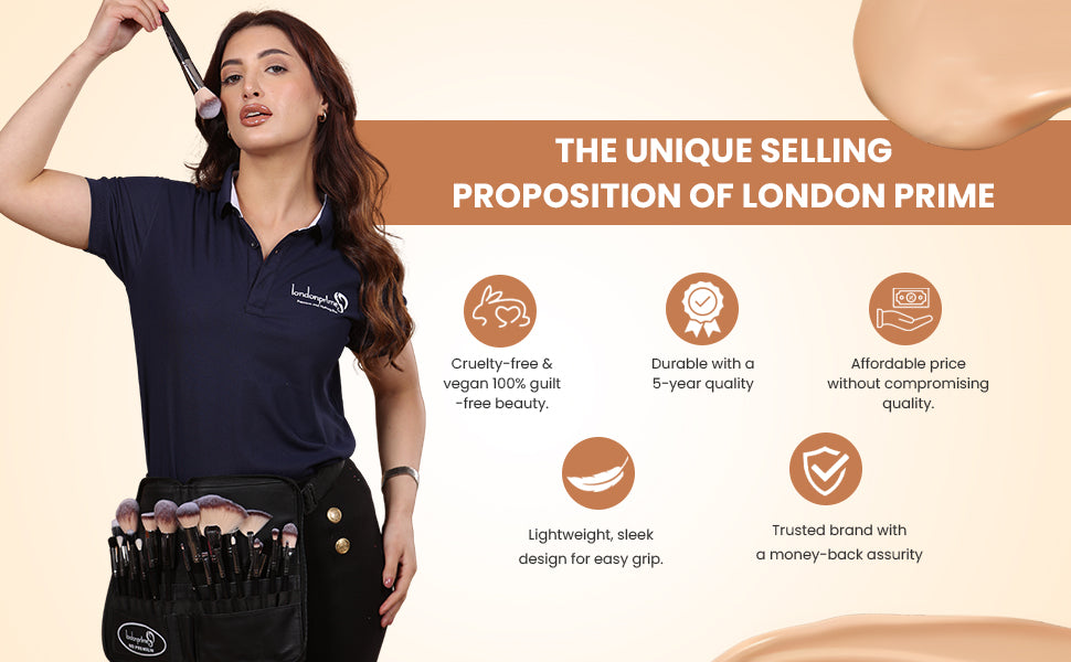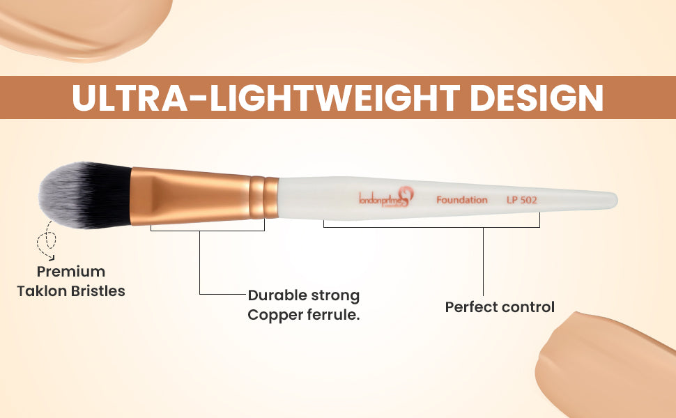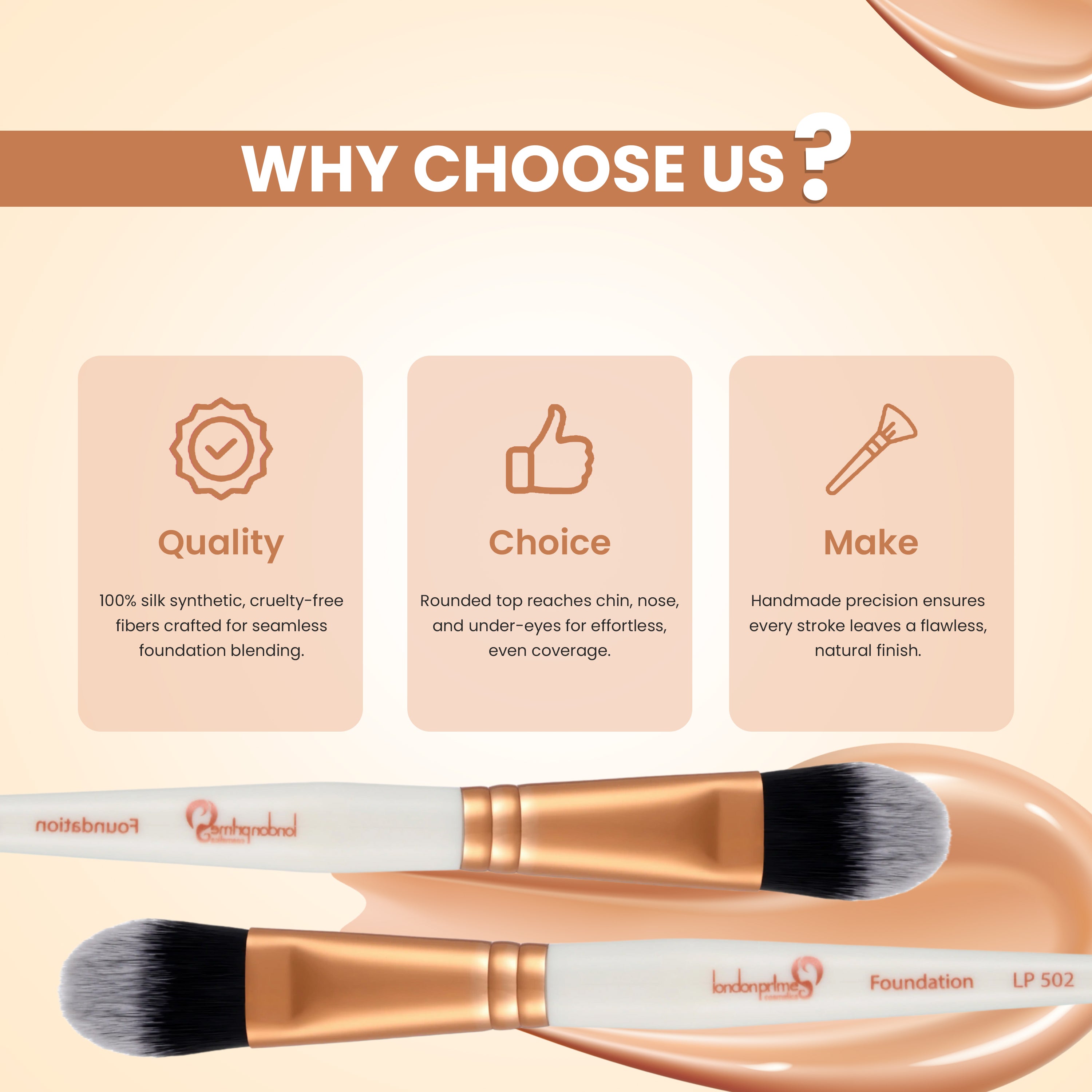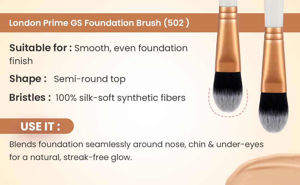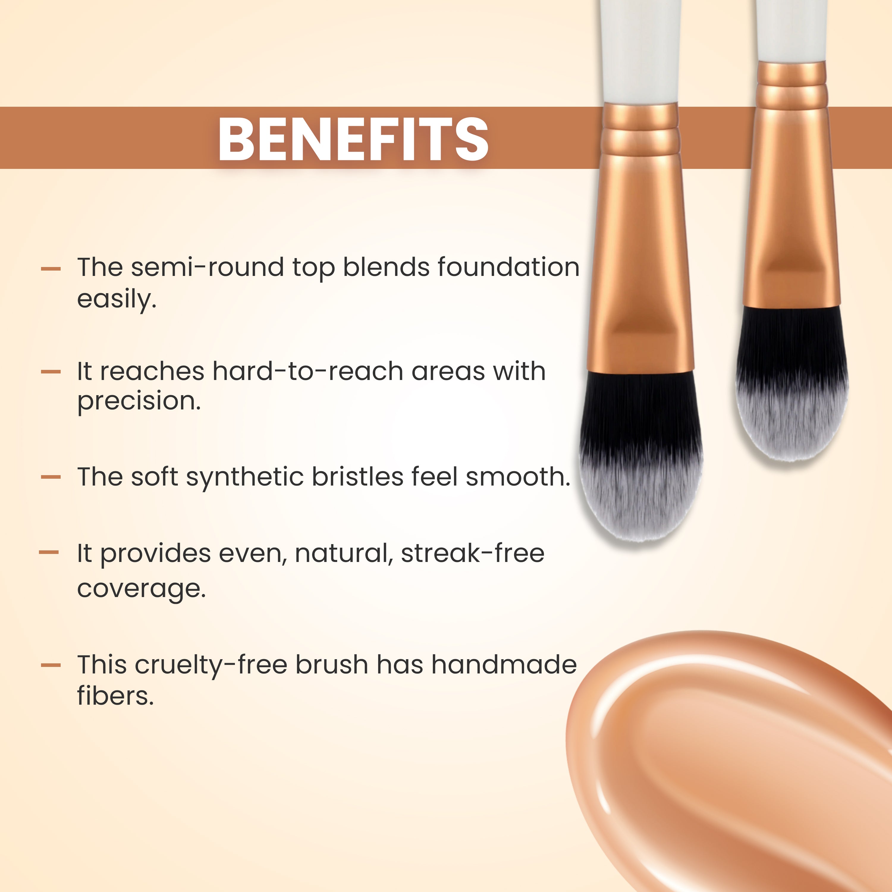 Glam strokes Foundation Brush has semi round top, specifically designed for effortless application and blending your foundation. The rounded shape allows expert application to those harder to reach places around the chin, nose and under eyes. This three tone brush head is made from 100% silk synthetic which is hand made fibers so it is cruelty free.