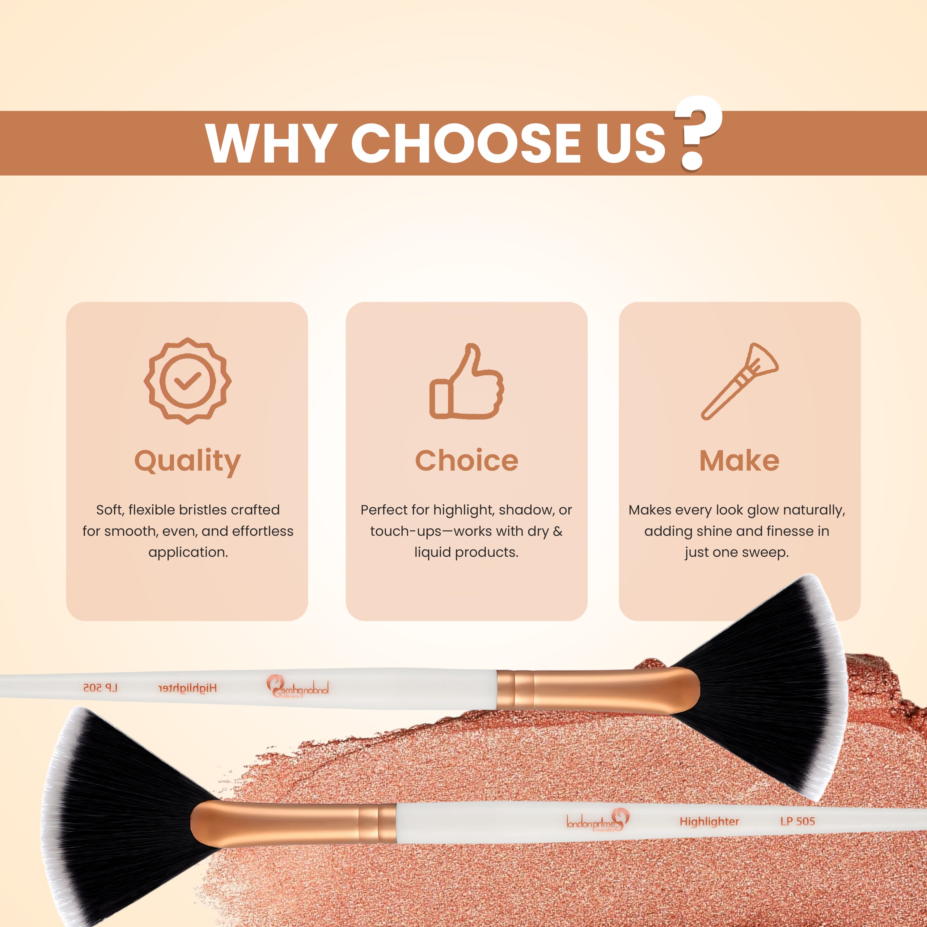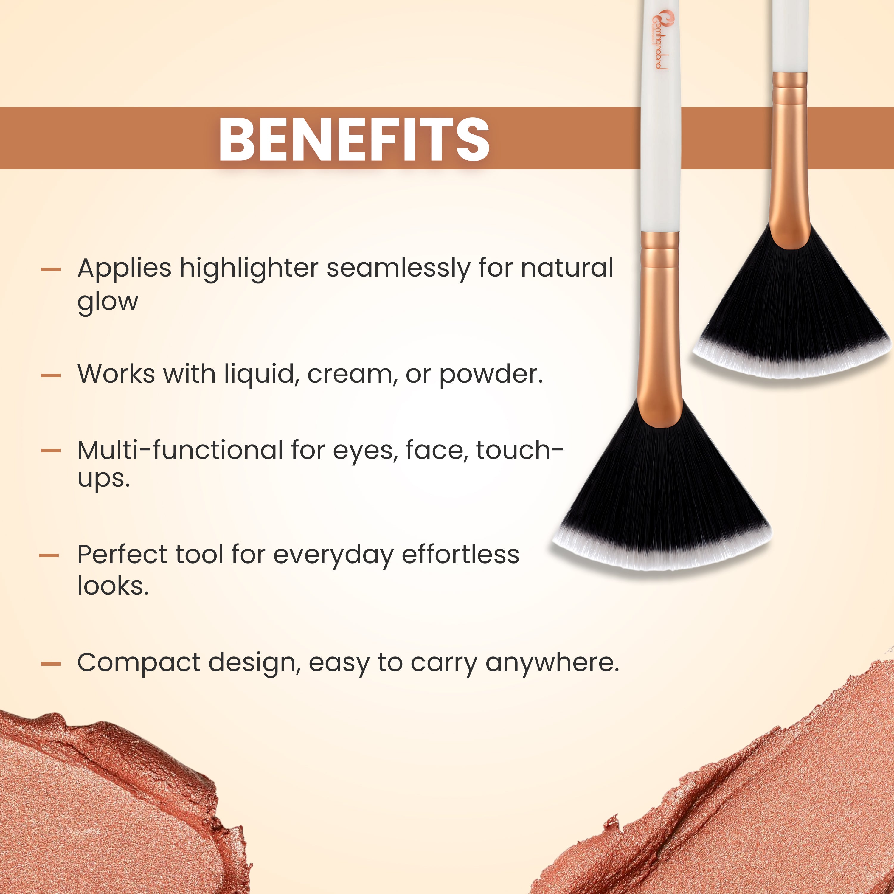 Glam strokes Highlighter Brush is a versatile and adaptable tool. It is a reliable for everyday use and ideal for applying eye shadow, smudging or fixing your makeup, this multi-functional brush can be used with both dry and liquid product.