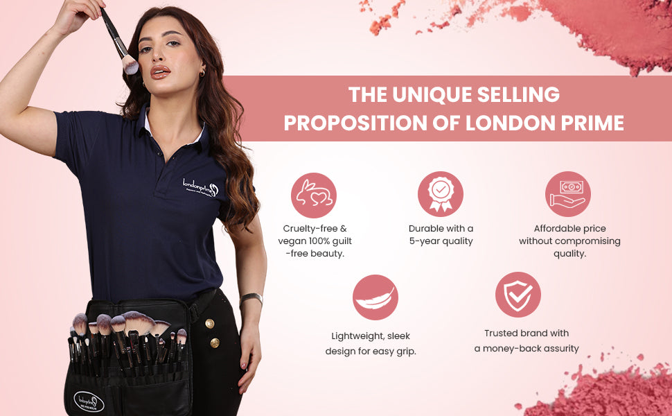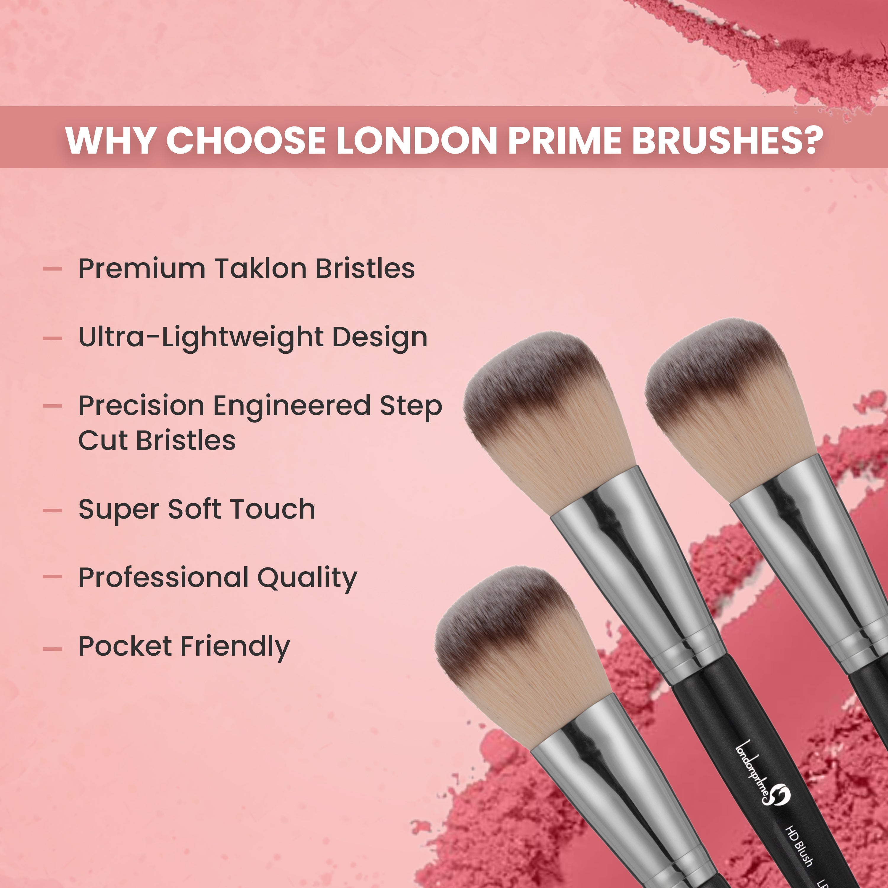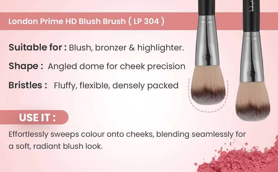 These are softer, fluffy and angled brushes for applying blush, bronzer or highlighters. These London Prime Cosmetics brushes are having more densely packed bristles for an effective use for blushing to get a splendid look. It possesses soft and a perfect shape to create the most natural looking blush. It features a dome shape with long, super-soft bristles that allows you to apply more concentrated product than any other brush, while still allowing you to blend and build colours . It is being designed in such a way that its bristles make it easier to apply products perfectly to your cheekbones.