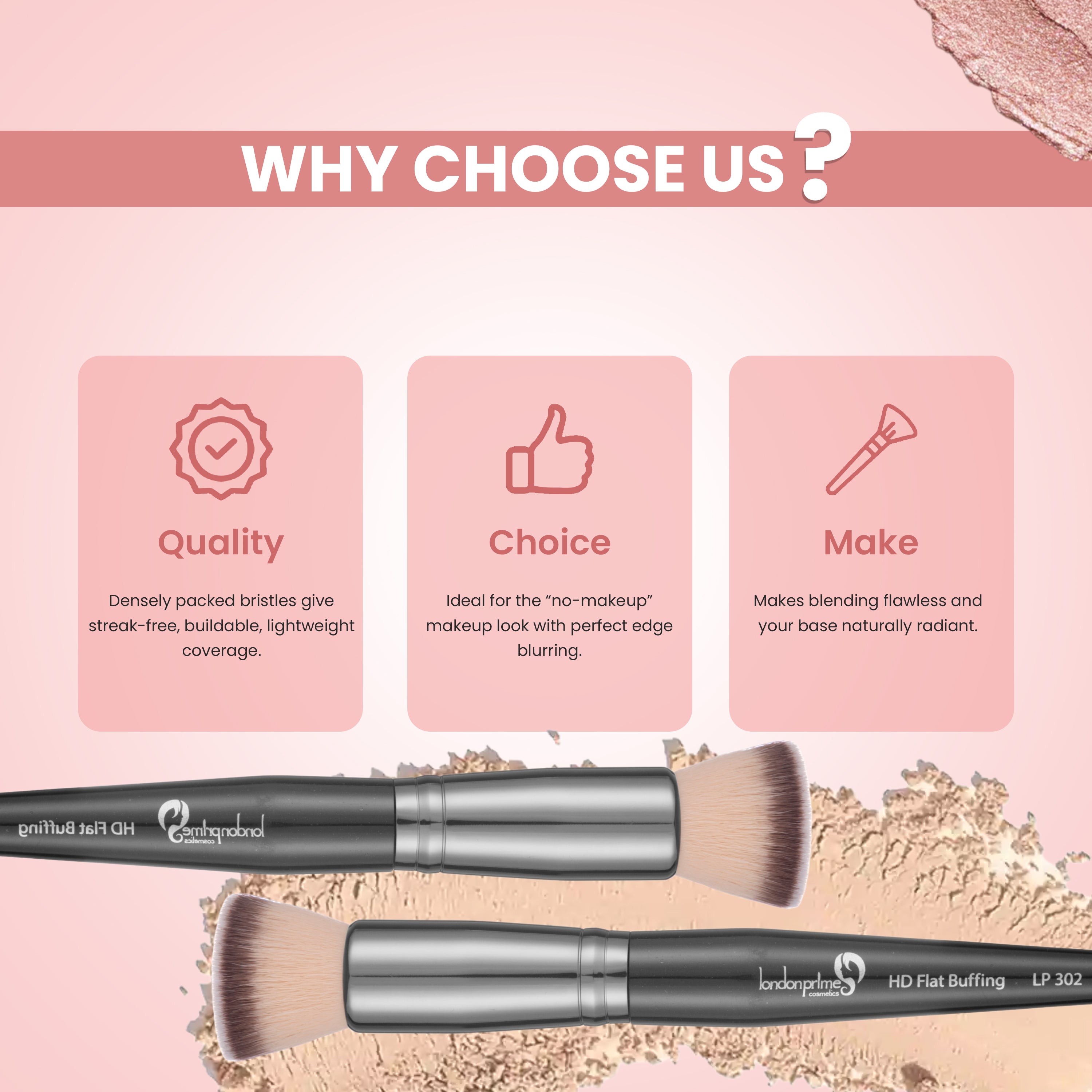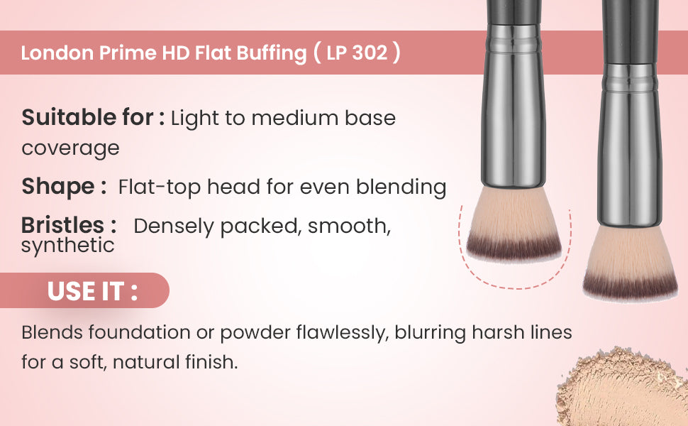 London Prime HD Flat Buffing brush will give you lightweight, buildable coverage for the 'no makeup' look you crave.This all-purpose brush is expertly designed with a flat top head and densely-packed bristles to pick up any formula. It blurs any edges and diffuses the product flawlessly.