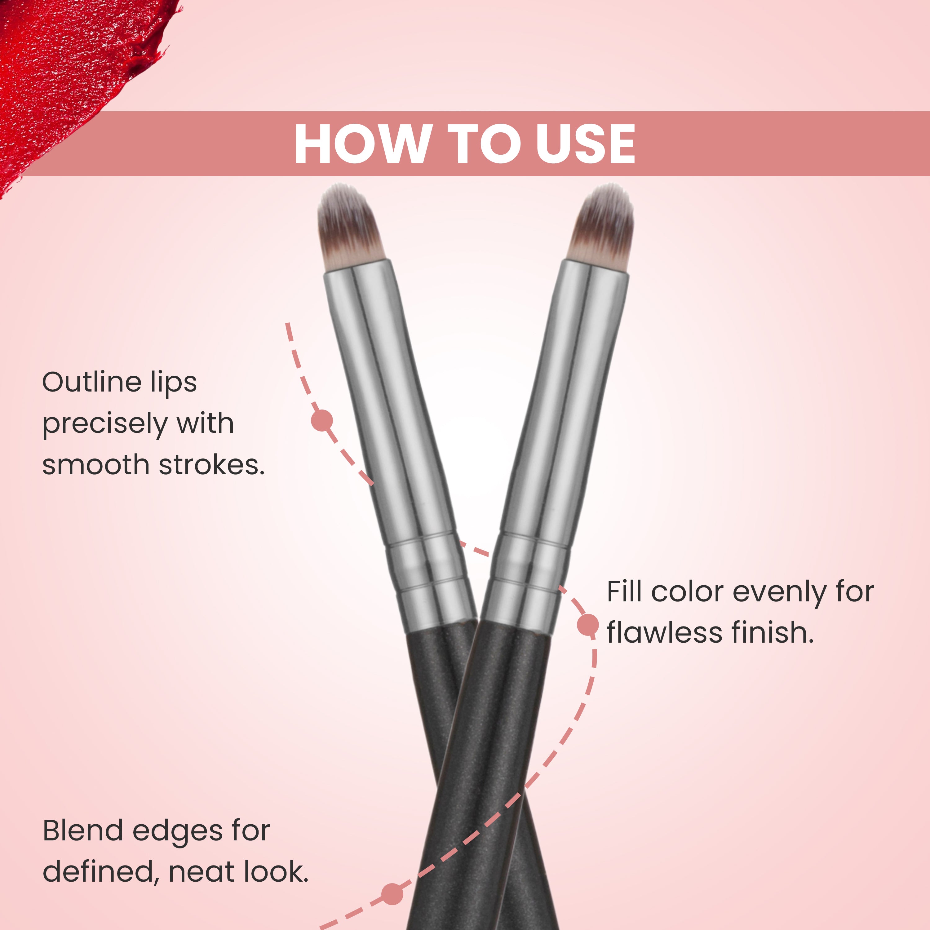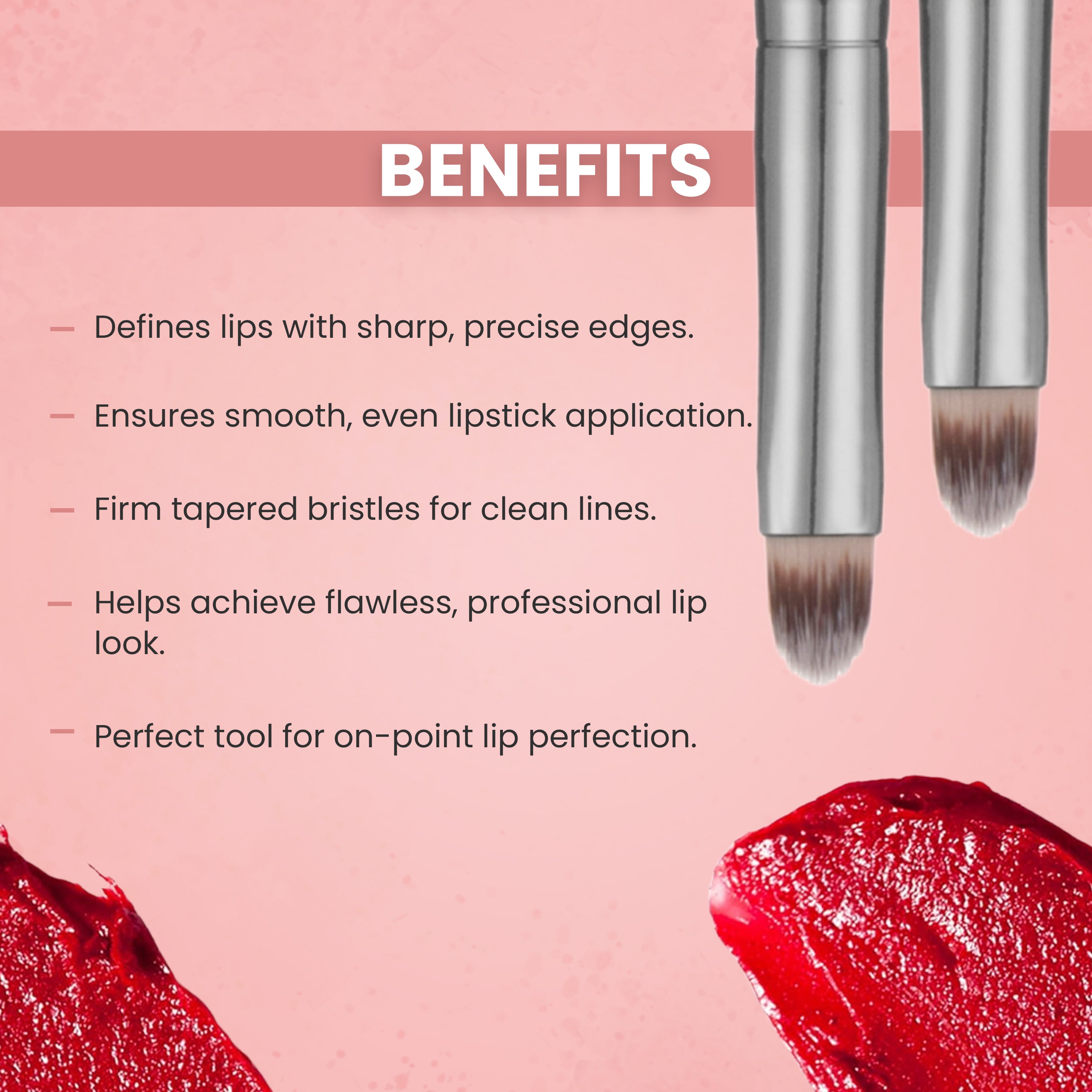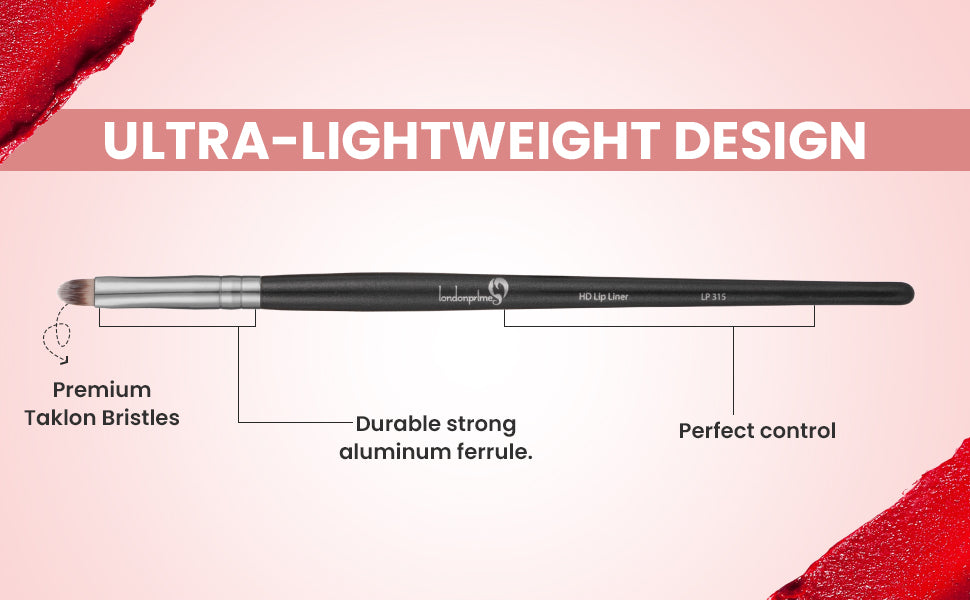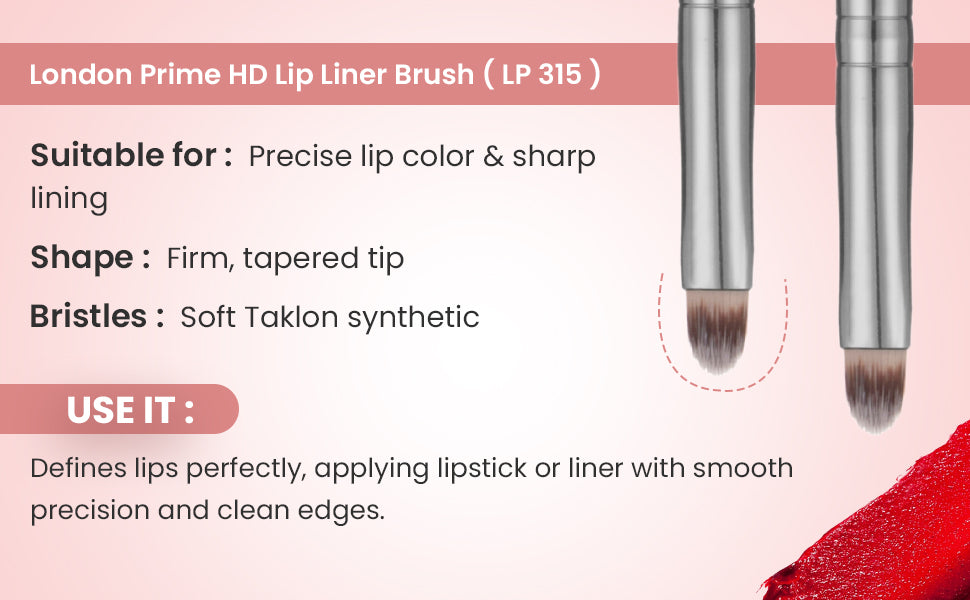 London Prime Cosmetic's firm tapered soft Taklon bristles Lip liner Brush is perfectly designed for the perfect application of lip colour to lip line. Ideal if you want a precise finish to your lipstick every time you use this brush.
