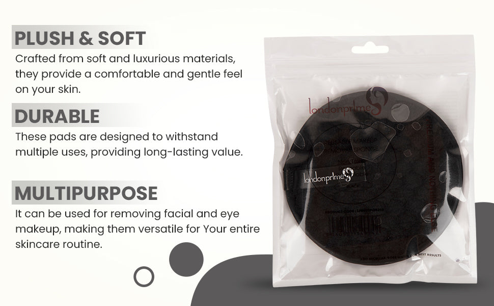 London Prime Makeup Removal Pad removes all your makeup with just one swipe. Just dip your pad in warm water and see the magic! It is specially designed to take the dirt and makeup off your face and clear the skin without causing any irritation. It is suitable for all skin types because it is made up of best quality cloth. You can use it as face puff or body puff.