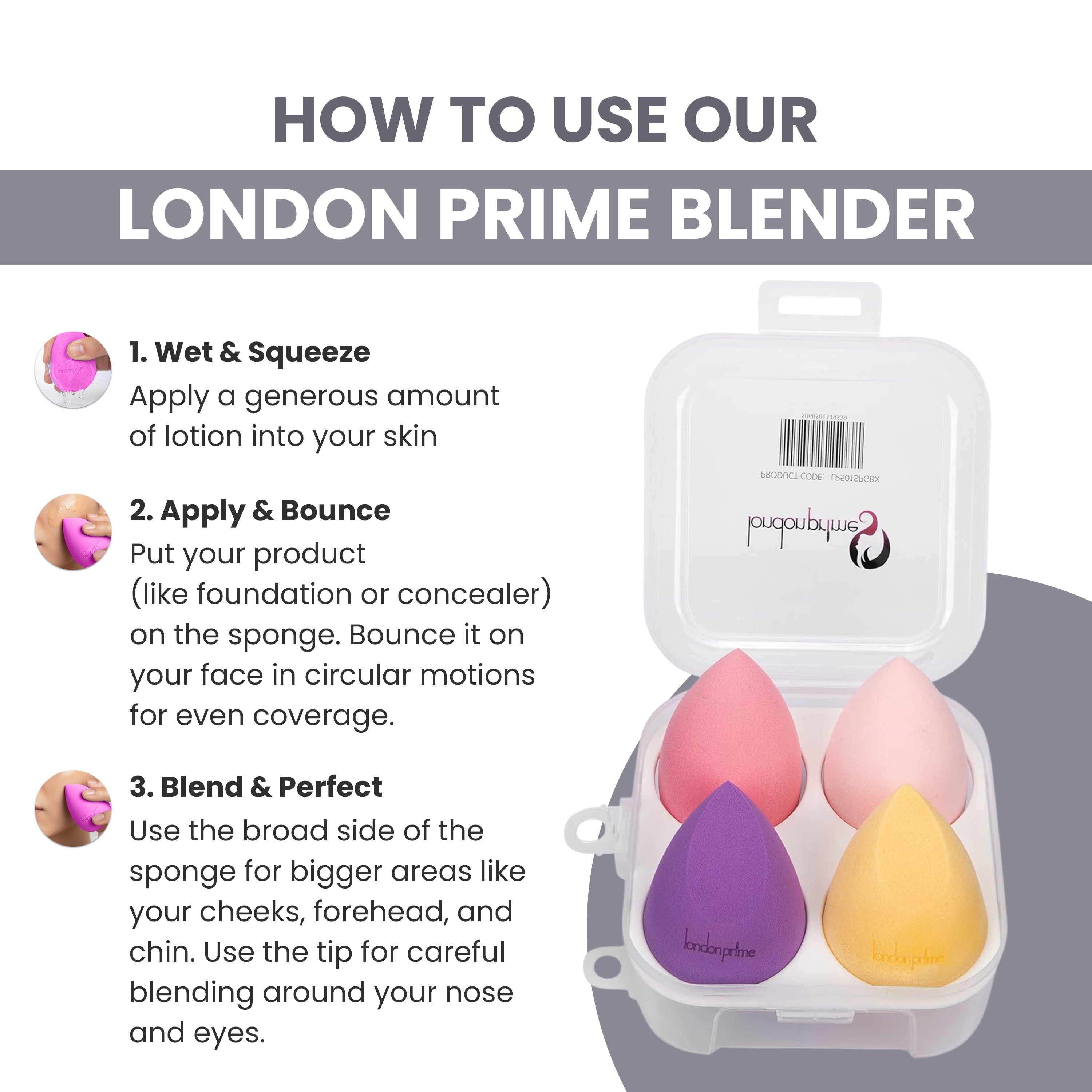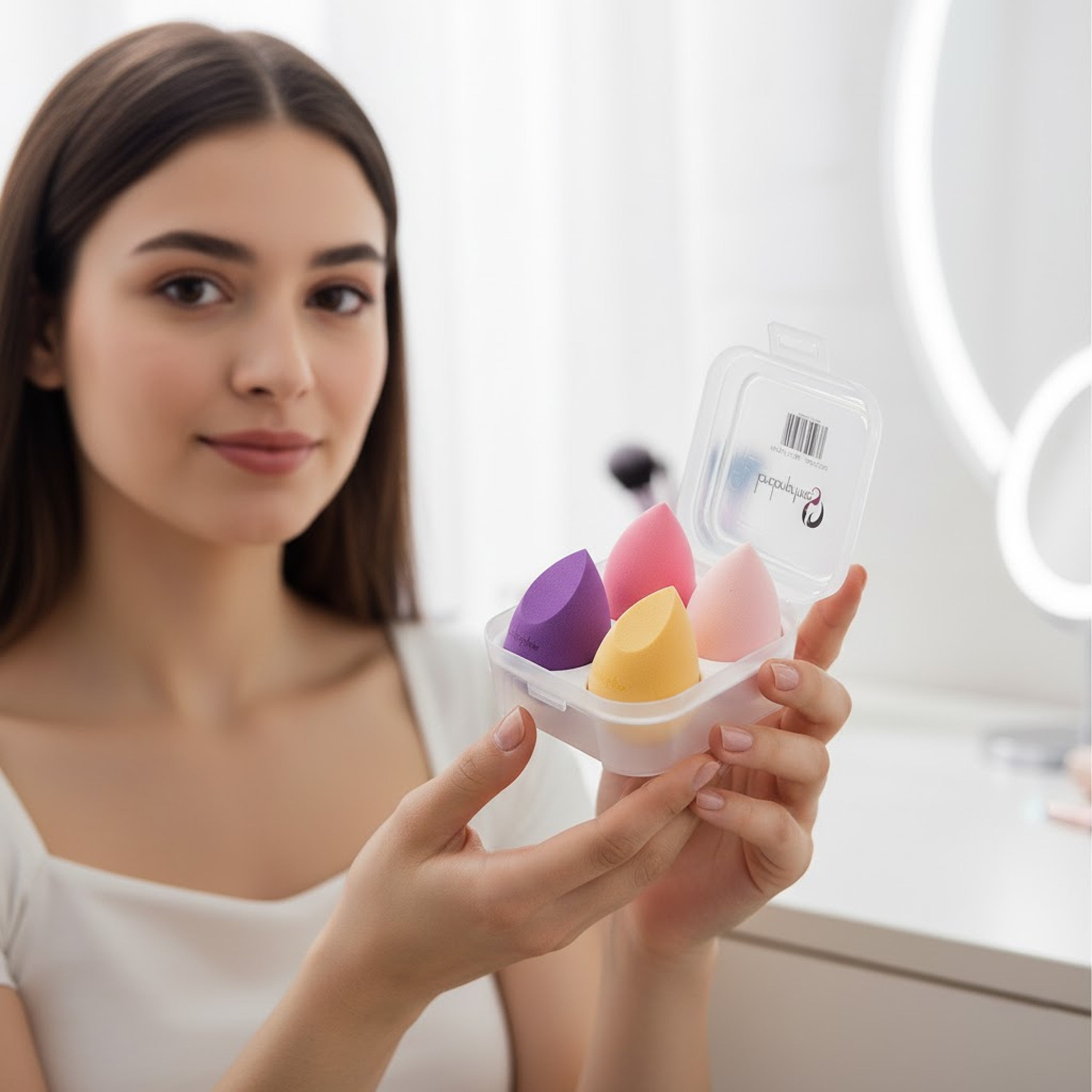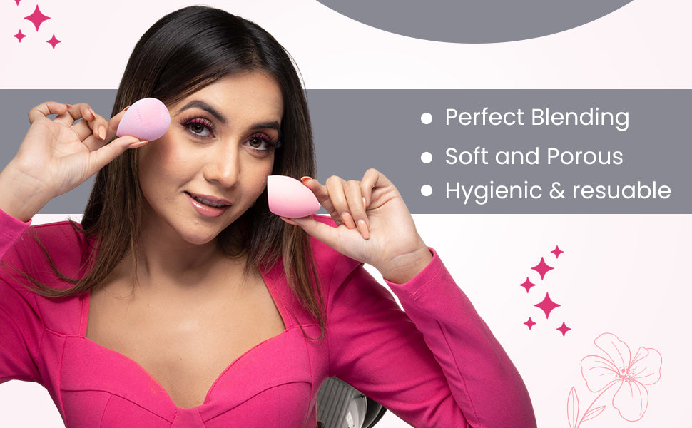 The Mini Soft sponge set is thumb sized and becomes about 50% larger when wet. It is perfect for under-eye areas, corners of nose, brow bones, lips and any other small face areas. It can apply makeup like primer, foundation, powder, cream, concealer, setting powder, eye shadow, lip color, blush, highlight and contour etc.