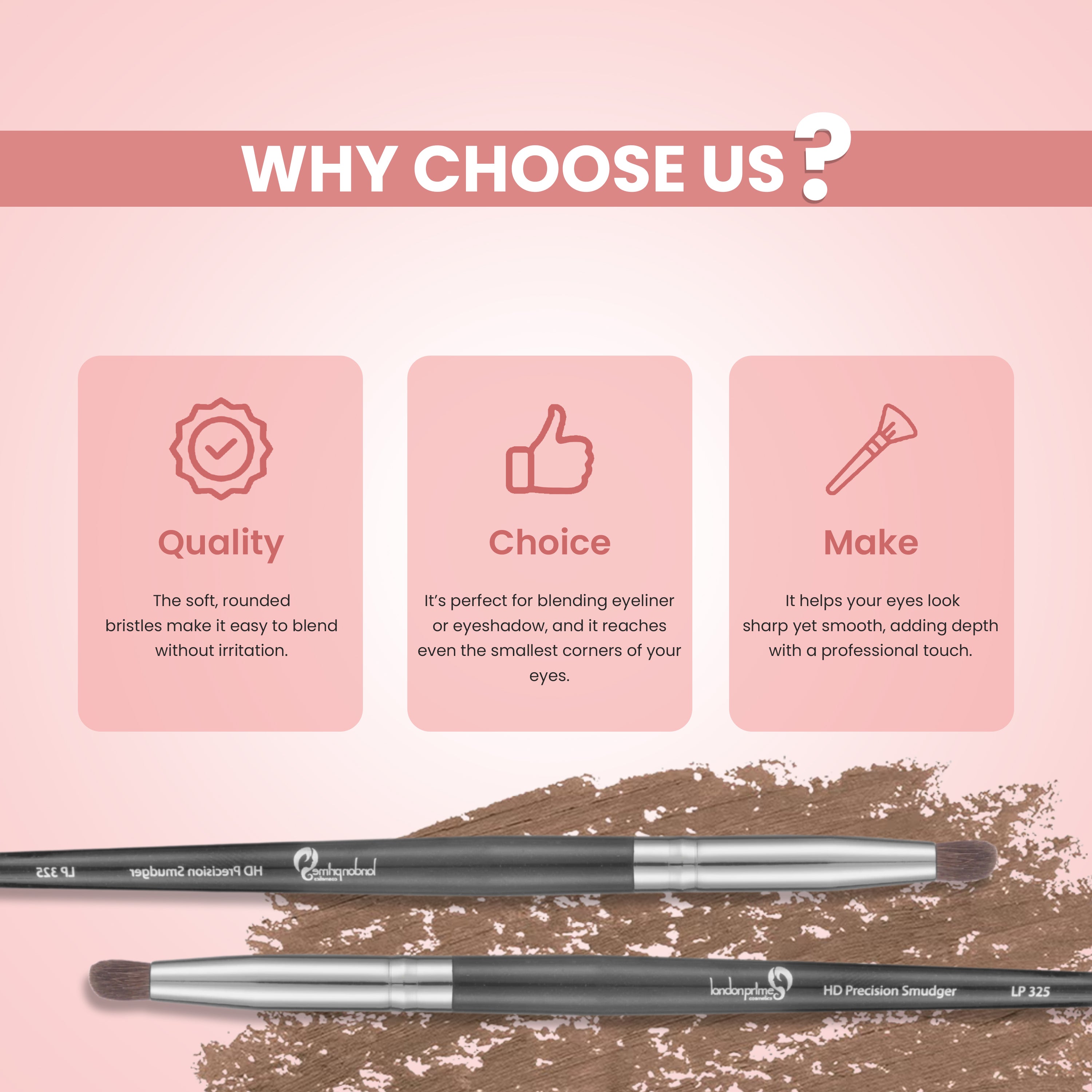 London Prime HD Precision Smudger brush is a classic brush used to blend and smudge any eyeshadow. It has a medium, rounded that allows for precise application. It reaches smallest areas of the eyes for a perfect eye look.