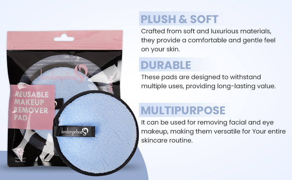 London Prime Makeup Removal Pad removes all your makeup with just one swipe. Just dip your pad in warm water and see the magic! It is specially designed to take the dirt and makeup off your face and clear the skin without causing any irritation. It is suitable for all skin types because it is made up of best quality cloth. You can use it as face puff or body puff.