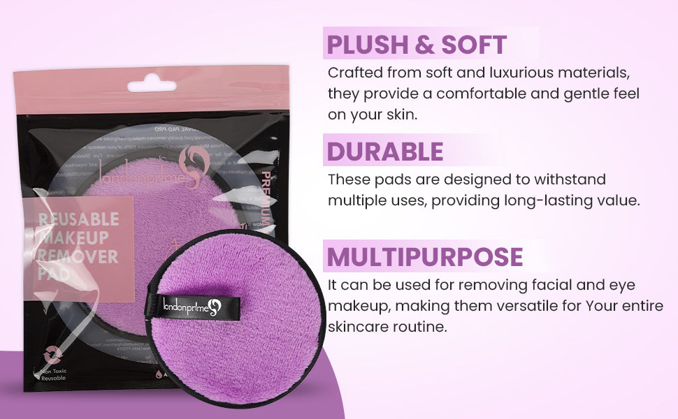 London Prime Makeup Removal Pad removes all your makeup with just one swipe. Just dip your pad in warm water and see the magic! It is specially designed to take the dirt and makeup off your face and clear the skin without causing any irritation. It is suitable for all skin types because it is made up of best quality cloth. You can use it as face puff or body puff.