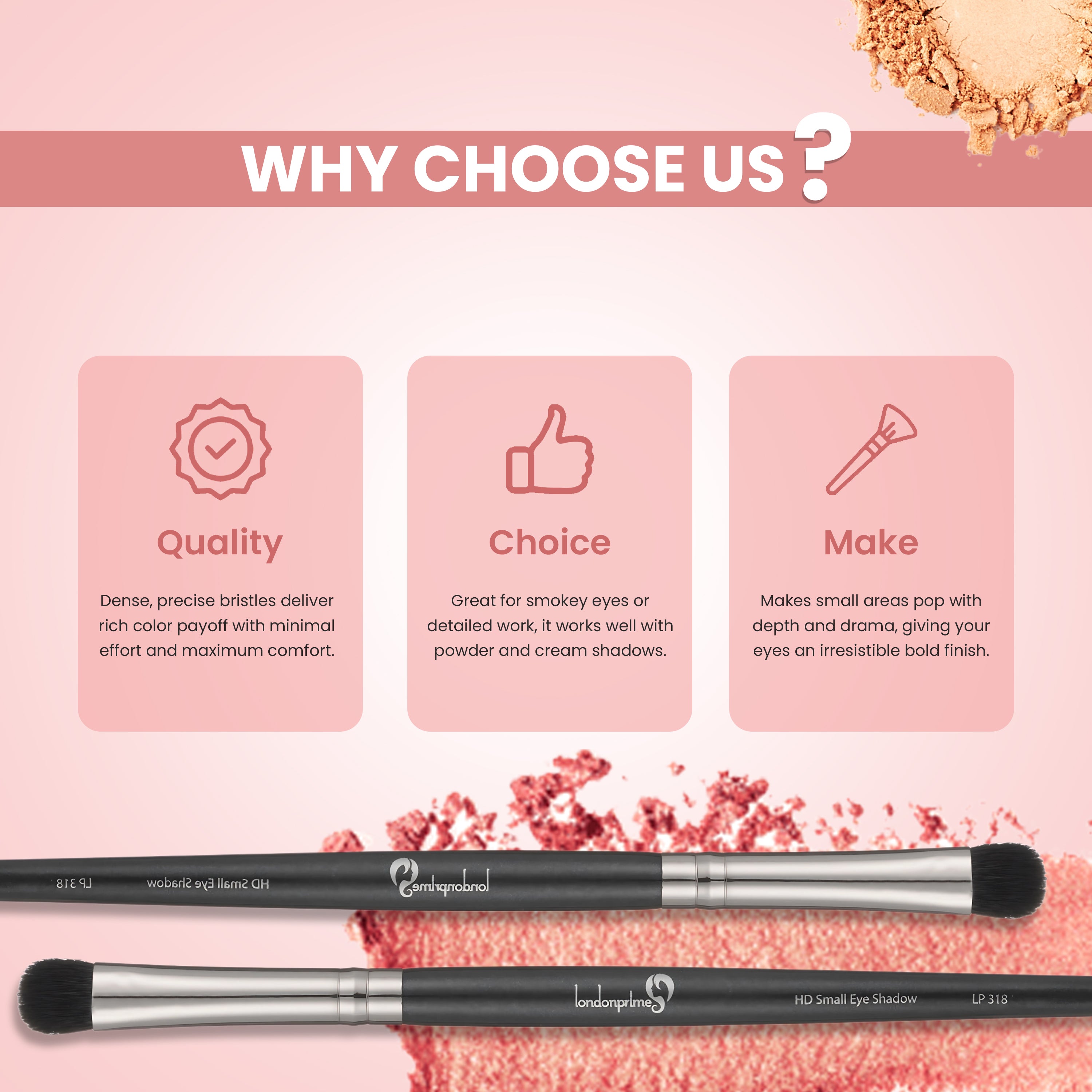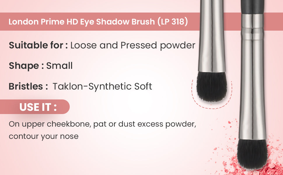London Prime Cosmetic's Small Eye shadow Brush is perfect for creating "Smokey Eyes" using the darker shades around the lashes. Apply eye color over small areas in a single sweep with the small eye shadow brush. It can be used with powder and cream eye-shadows.