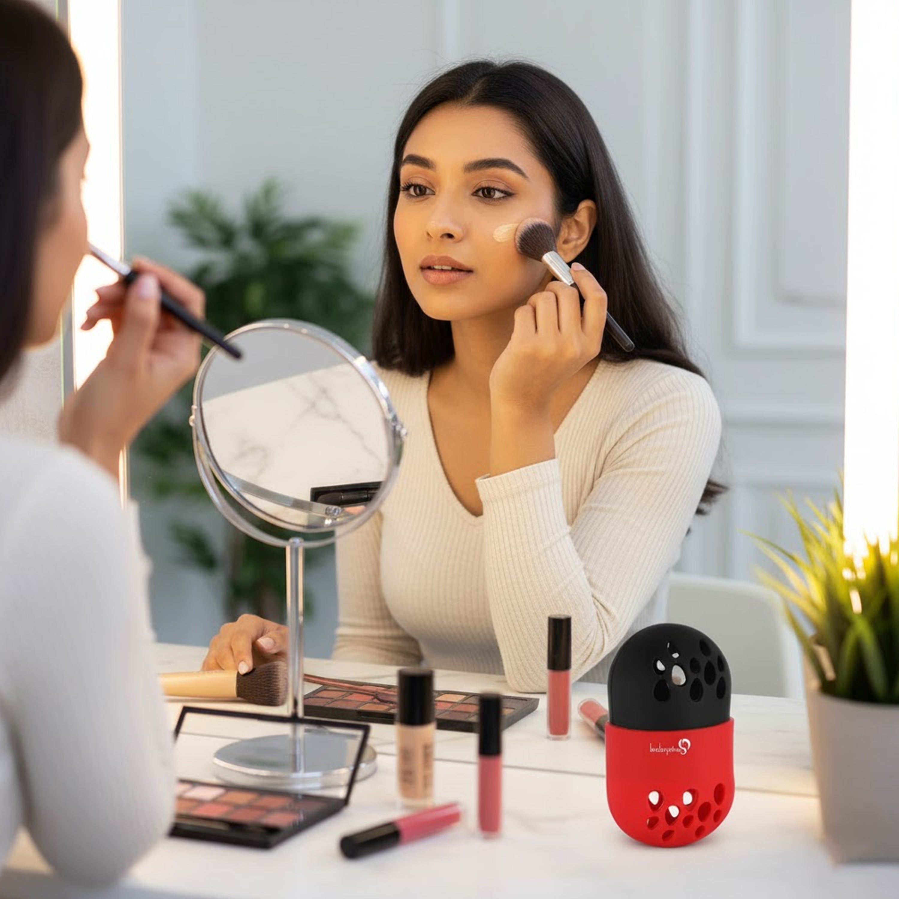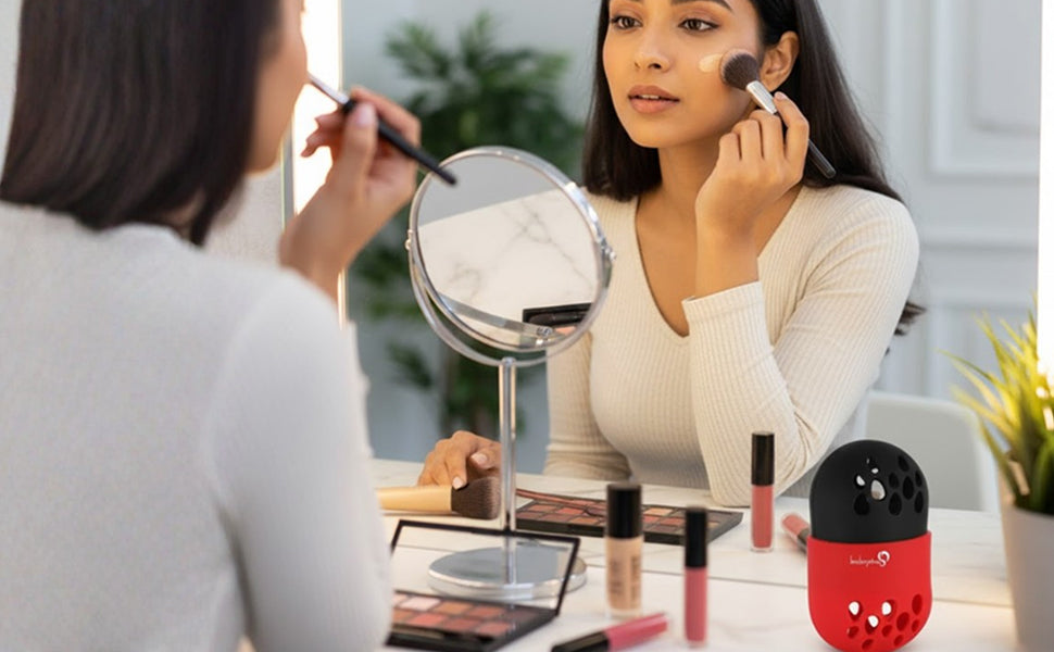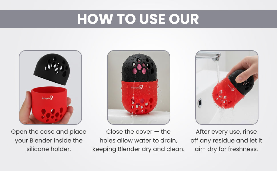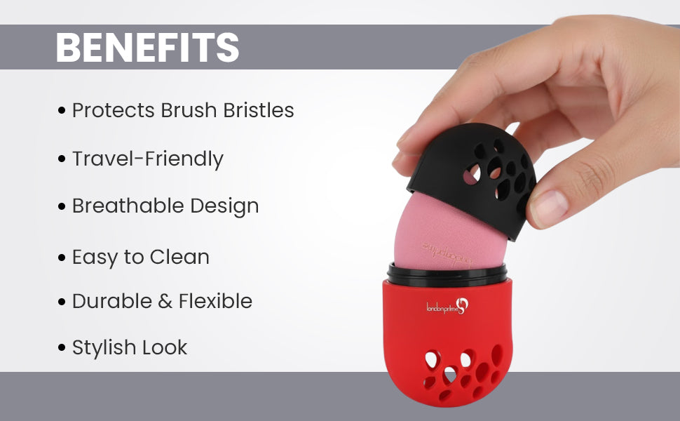 Made up of silicon and has little ventilation drops that will protect your wet makeup sponges. The case is big enough to hold a big wet sponge and you can also store your dry sponge in it.